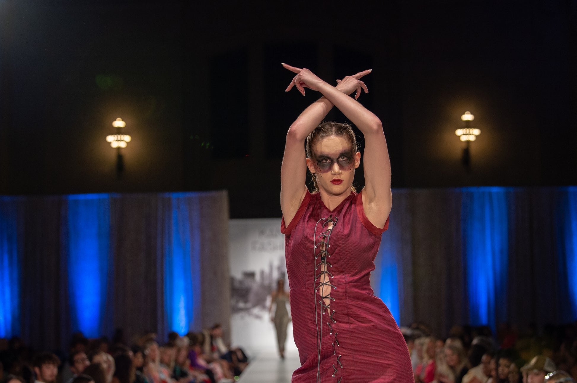 Fall 2022 "Ragnarök" Collection - Maroon Geometric Sheath Skirt with front Corset Lacing