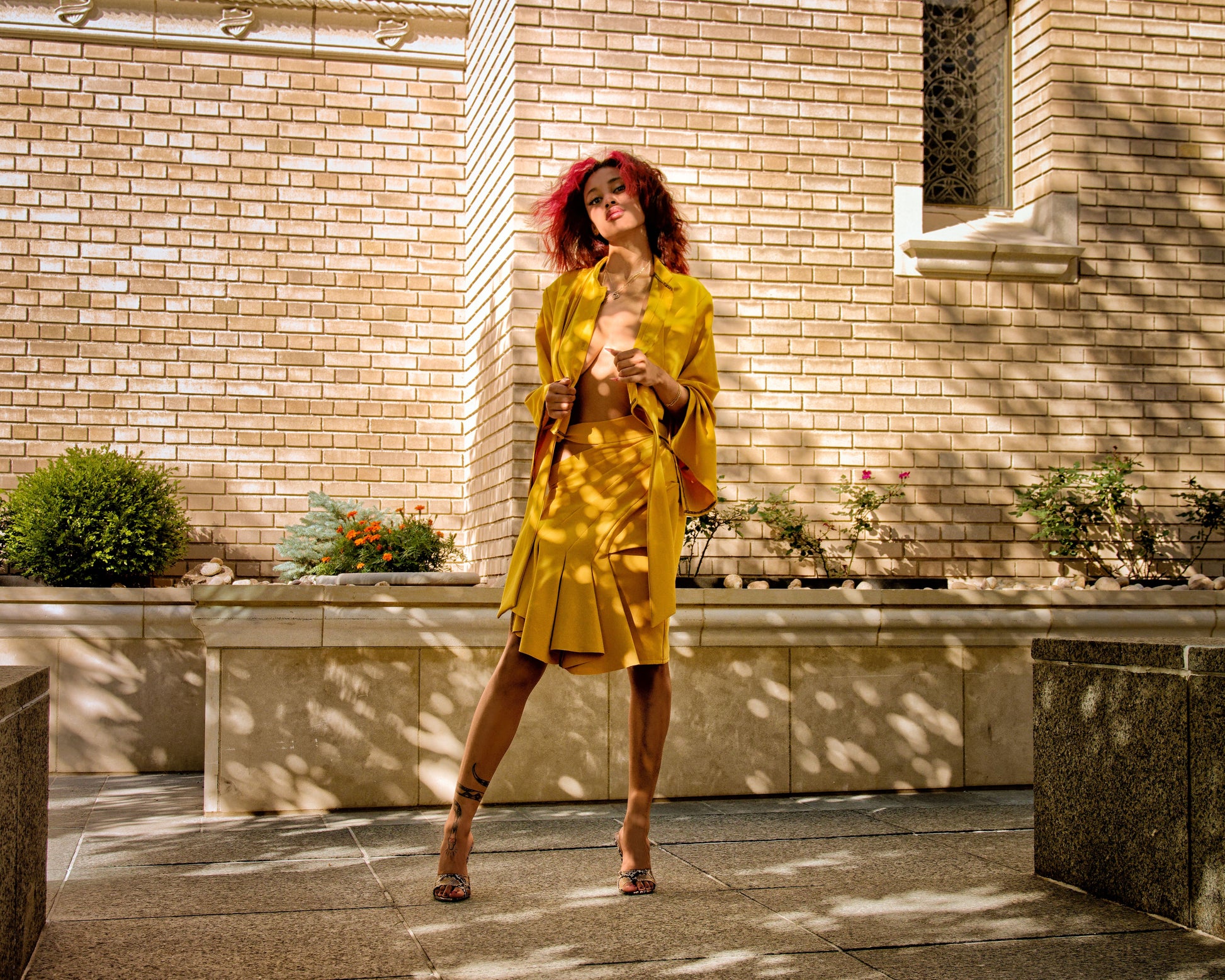 Elevate your wardrobe with this striking yellow mid skirt from the Spring 2022 "Retaliation" Collection. Crafted from premium stretch fabric, it moves with you while maintaining its impeccable silhouette. The architecture ruffles create dynamic visual interest and dimensional depth, transforming a classic style into a statement piece. Perfect for those who appreciate refined design with an edge, this skirt seamlessly transitions from professional settings to evening occasions. The thoughtful construction ensures both comfort and confidence with every wear.